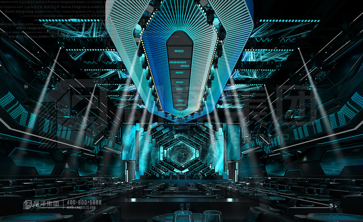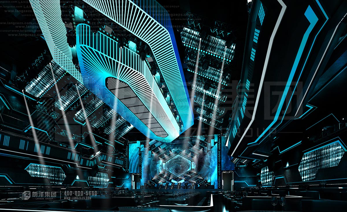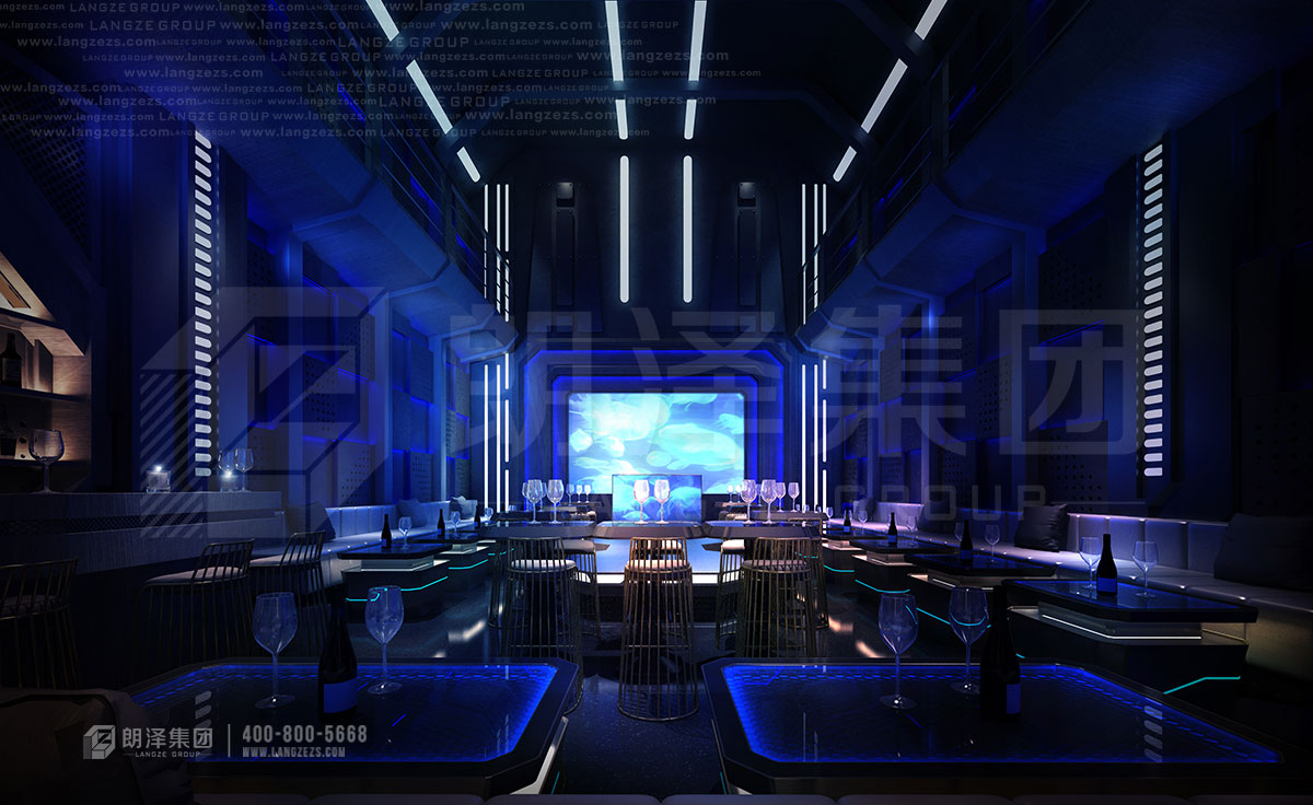 外觀采用線條陣列的形式,在燈光襯托下盡顯優(yōu)雅大氣,給人以強(qiáng)烈的視覺沖擊,極具現(xiàn)代化與國際化氣息。前廳沿用了現(xiàn)代化的設(shè)計(jì),運(yùn)用不規(guī)則幾何造型,構(gòu)建出錯(cuò)落和諧的秩序之美,以太空飛船為核心概念,匠心獨(dú)運(yùn)、別出心裁,用線條勾勒出硬朗的輪廓,融入濃厚的未來科技感。大廳及包房皆以太空艙的形式展現(xiàn),頂部造型形似飛船、又酷似軍艦,蓄勢(shì)待發(fā),大面積地采用流行尖端的宇宙藍(lán)和太空白,搭配炫酷光影,讓人仿佛置身好萊塢大片。