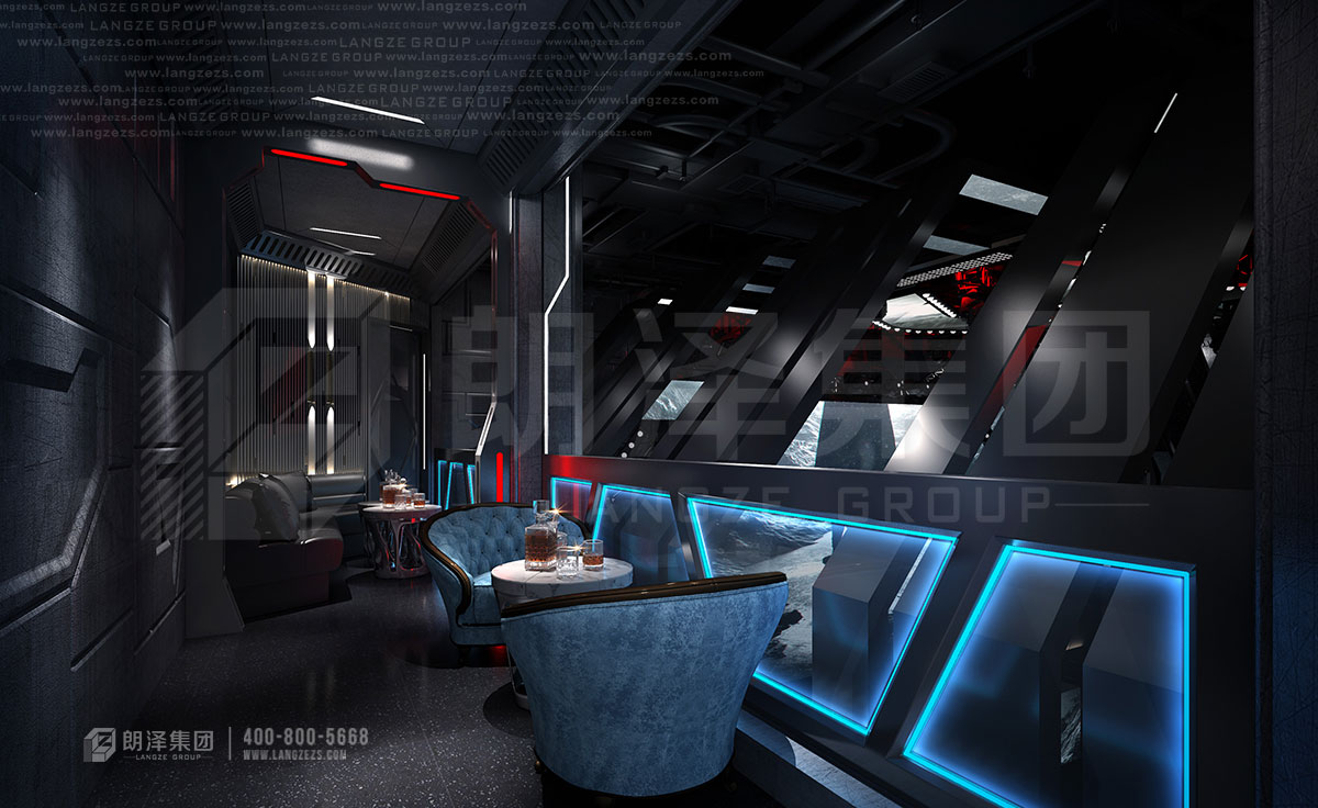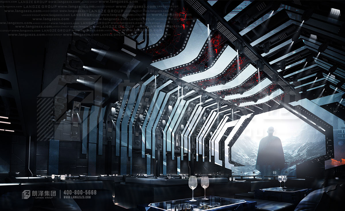 上古酒吧采用未來感的方式呈現(xiàn),機(jī)械感的造型裝飾,硬朗的科技線條,炫酷的光影和大熒幕,讓顧客仿佛走在未來,走在異次元。張揚(yáng)不羈的個(gè)性、感官刺激的享受,舒適激情的放松,這樣的氛圍下,人們不由得舒展疲憊的神經(jīng)。