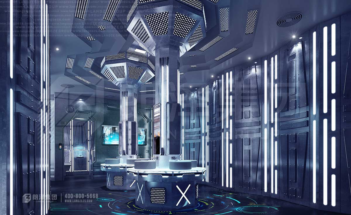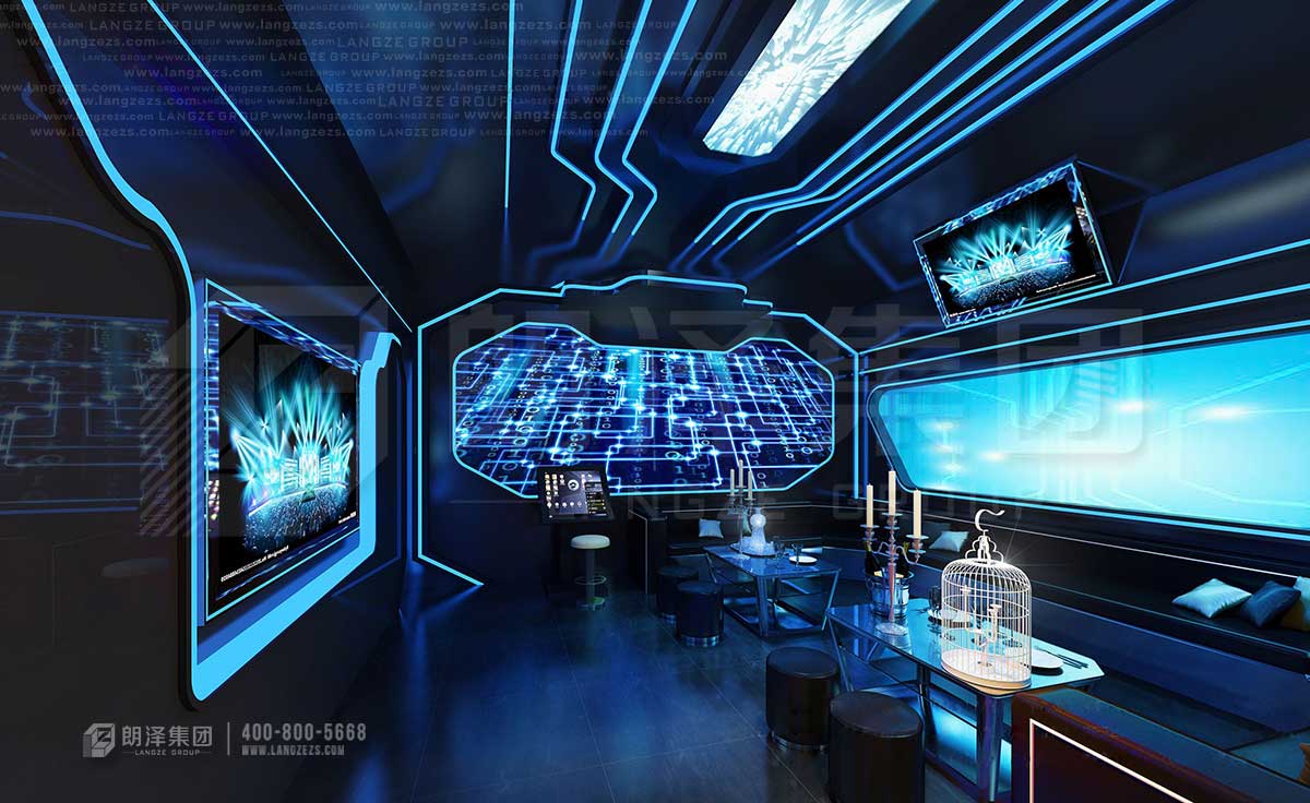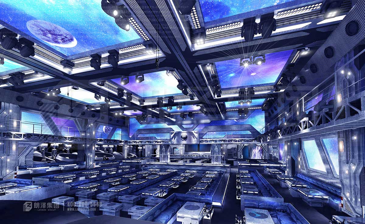 以太空艙的形式打造,以科技藍(lán)為主題色,搭配炫酷的燈光,讓人仿佛走在未來空間。