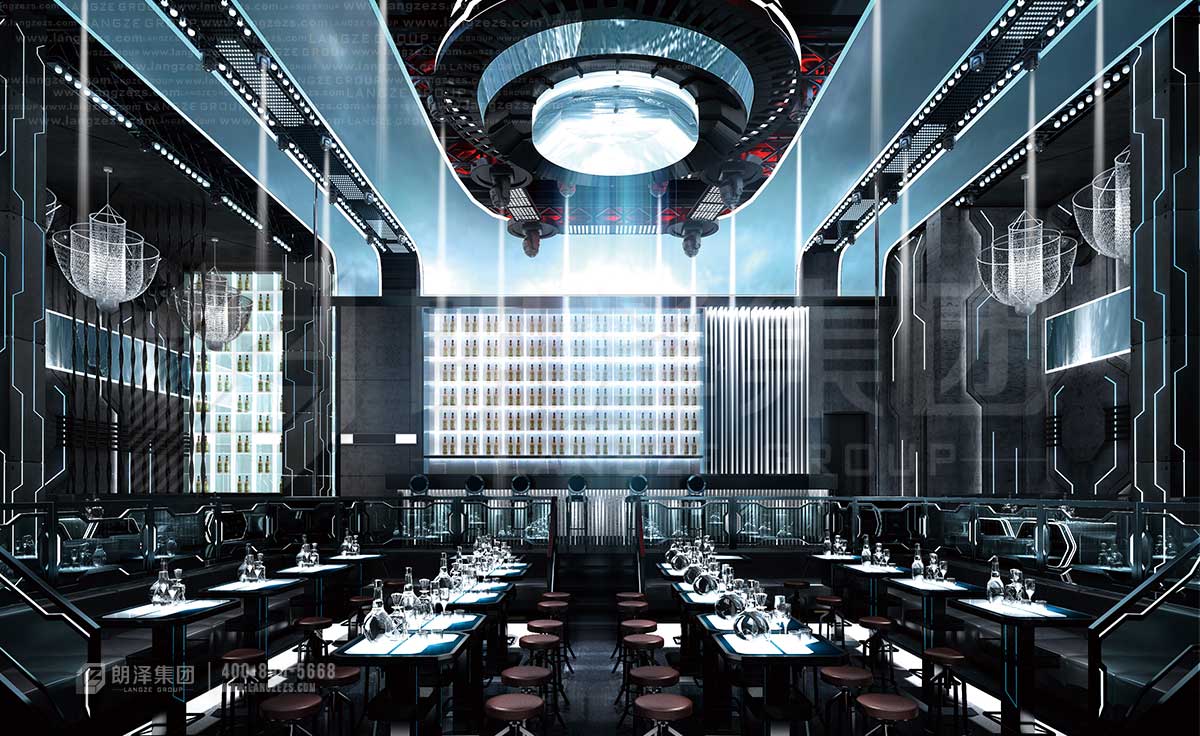 酒吧的設(shè)計(jì)以線條,光線為主要設(shè)計(jì)元素,以線條和光線的結(jié)合打造出太陽(yáng)的光輝。線條的相互交錯(cuò)如異空間,又營(yíng)造出神秘感。