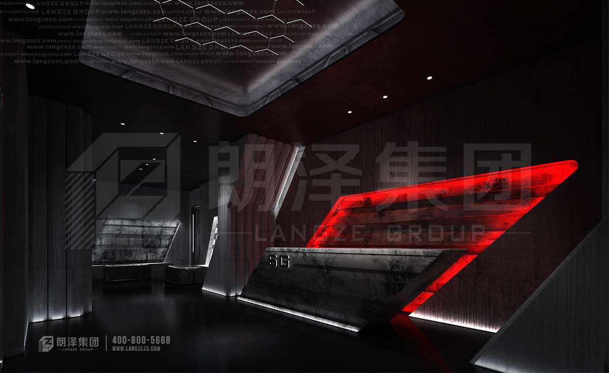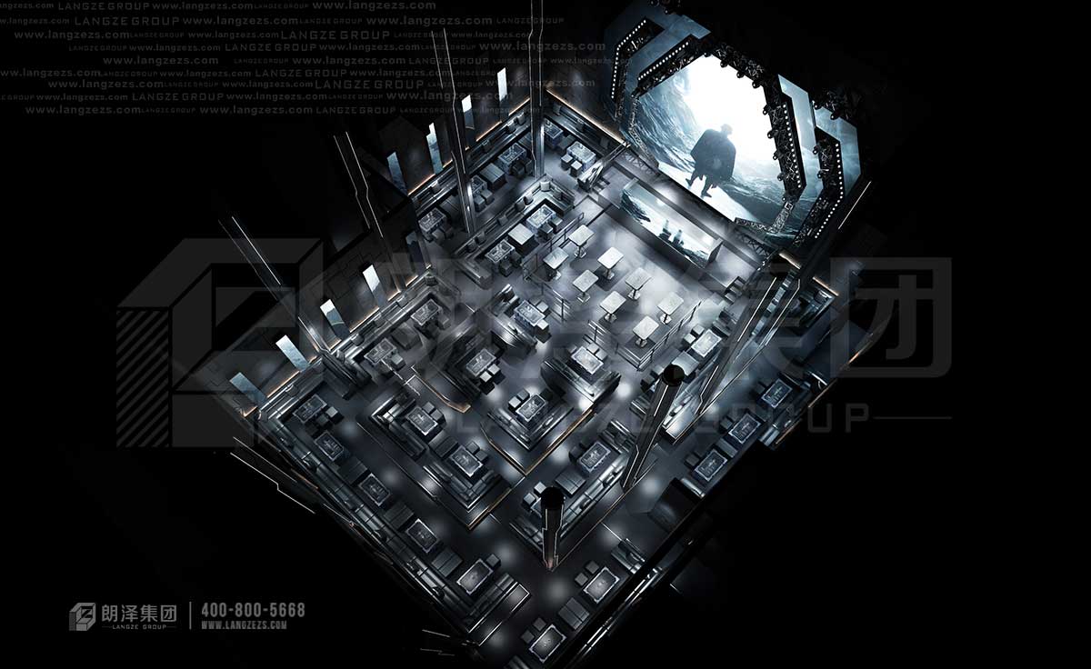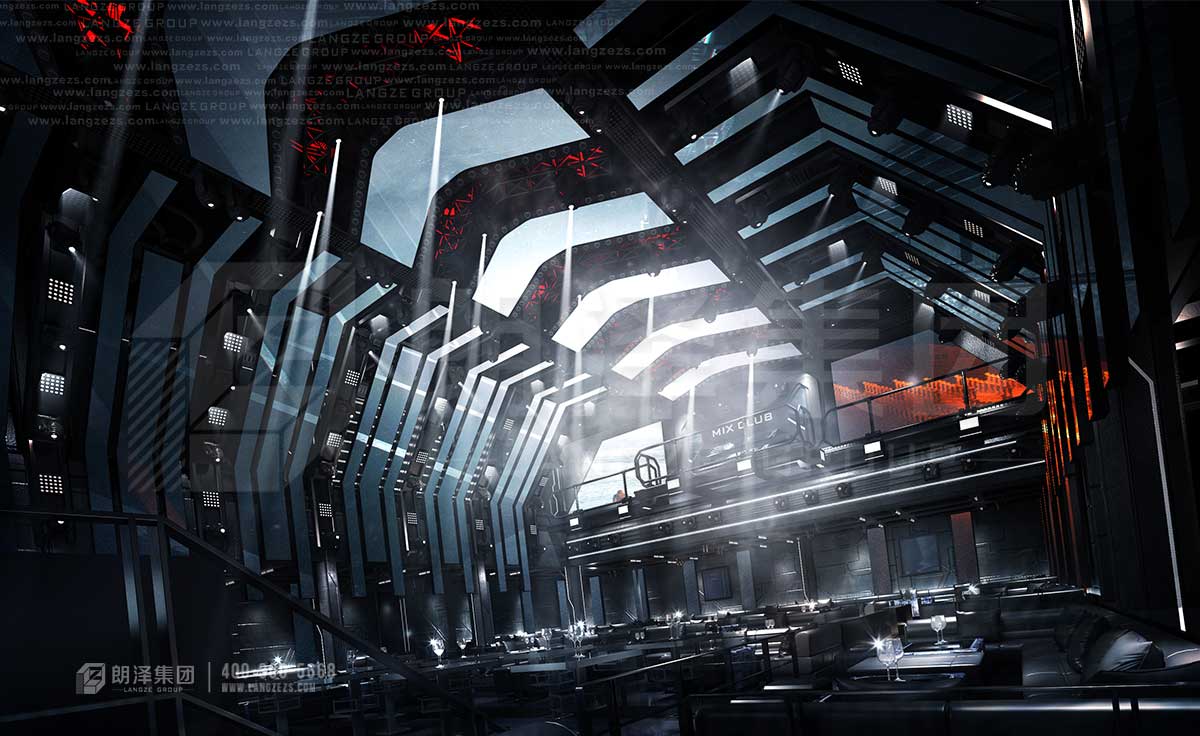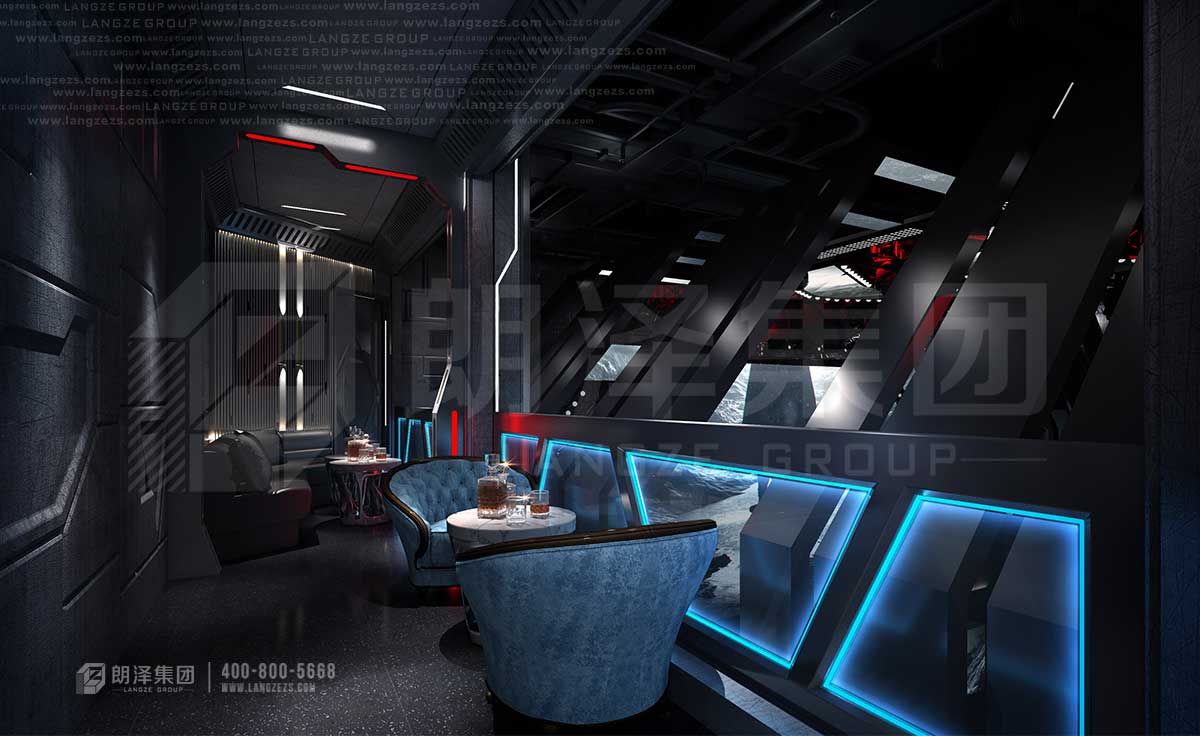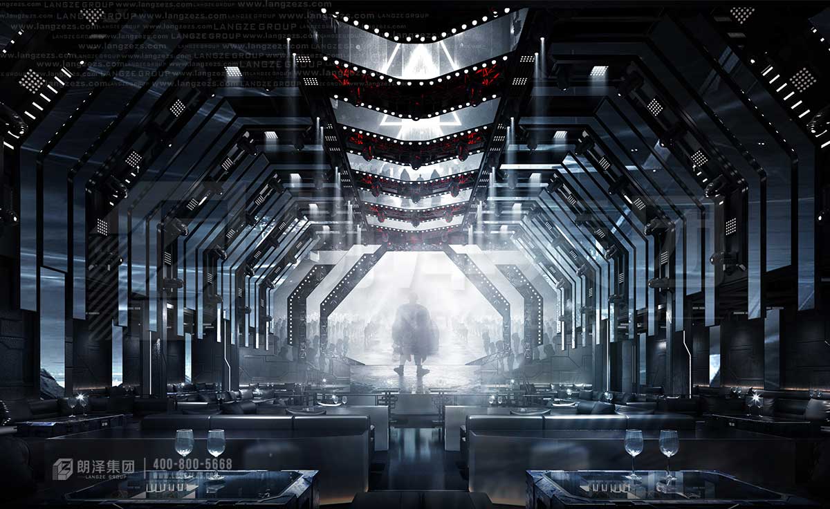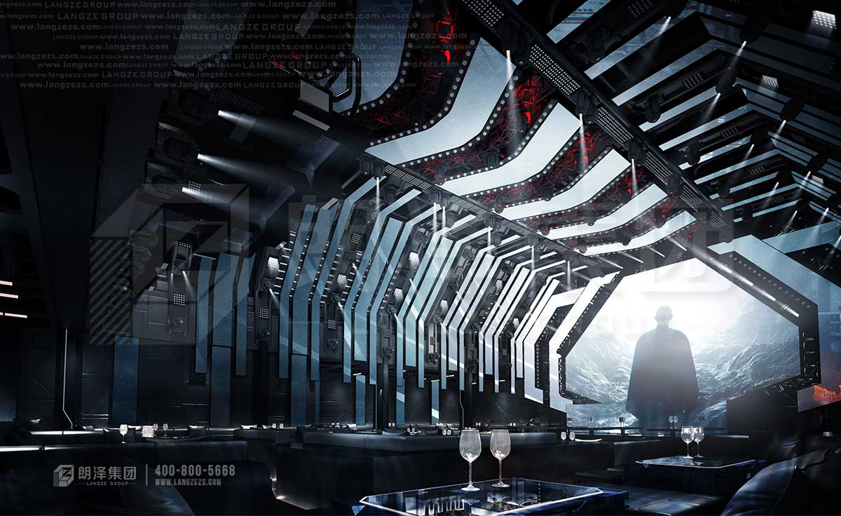 上古酒吧采用未來感的方式呈現(xiàn),機(jī)械感的造型裝飾,硬朗的科技線條,炫酷的光影和大熒幕,讓顧客仿佛走在未來,走在異次元。張揚(yáng)不羈的個(gè)性、感官刺激的享受,舒適激情的放松,這樣的氛圍下,人們不由得舒展疲憊的神經(jīng)。