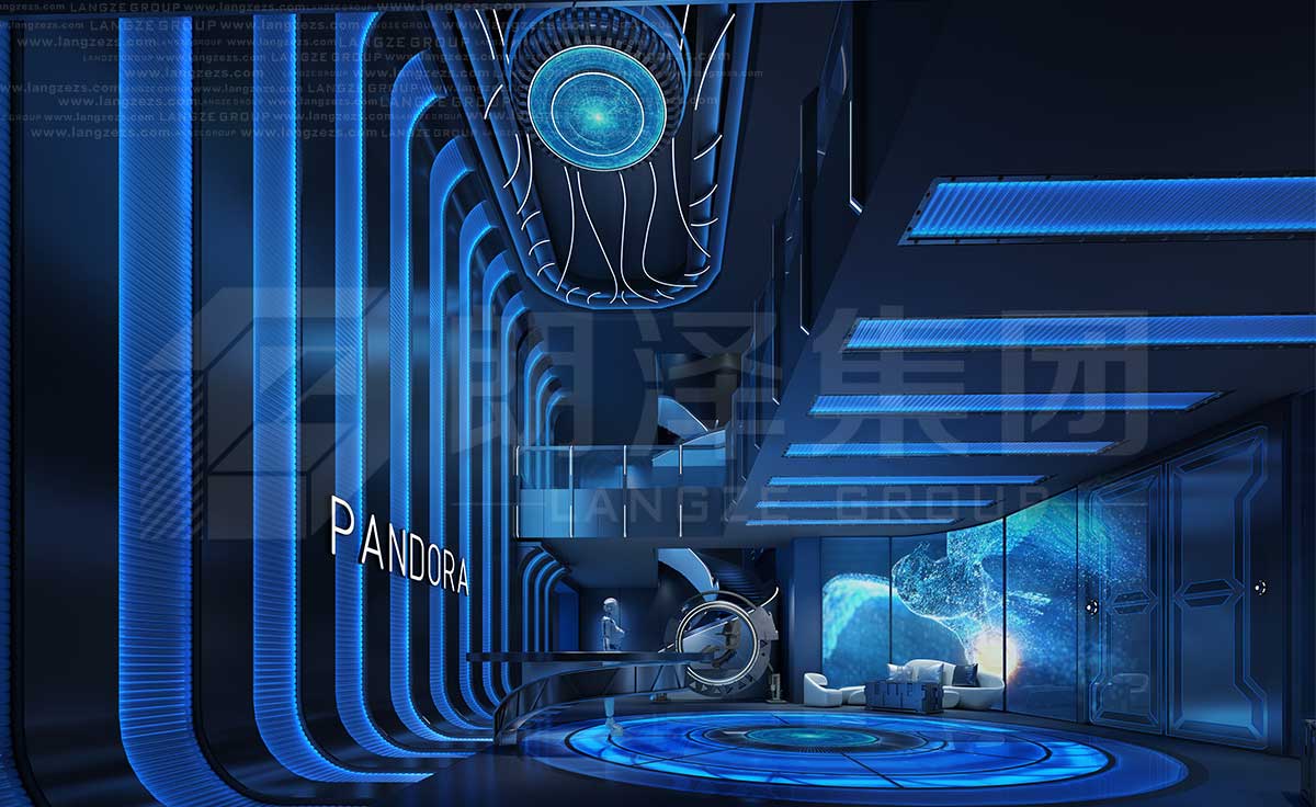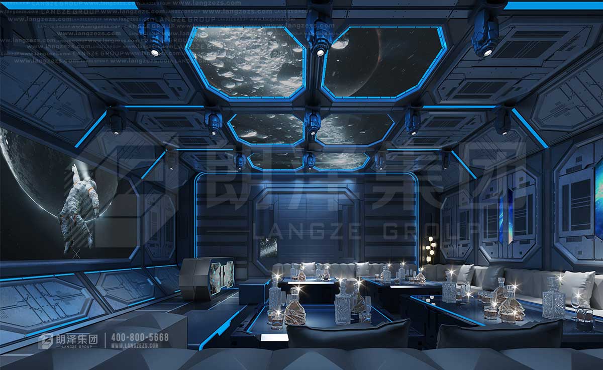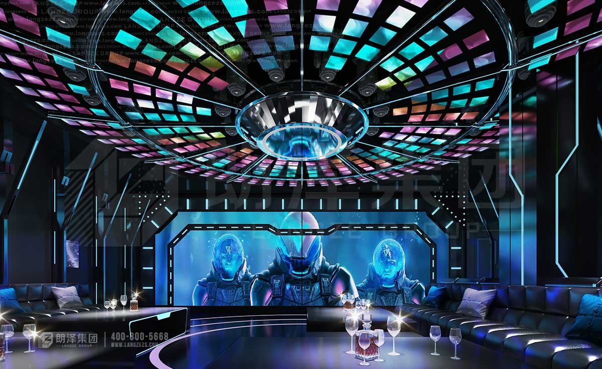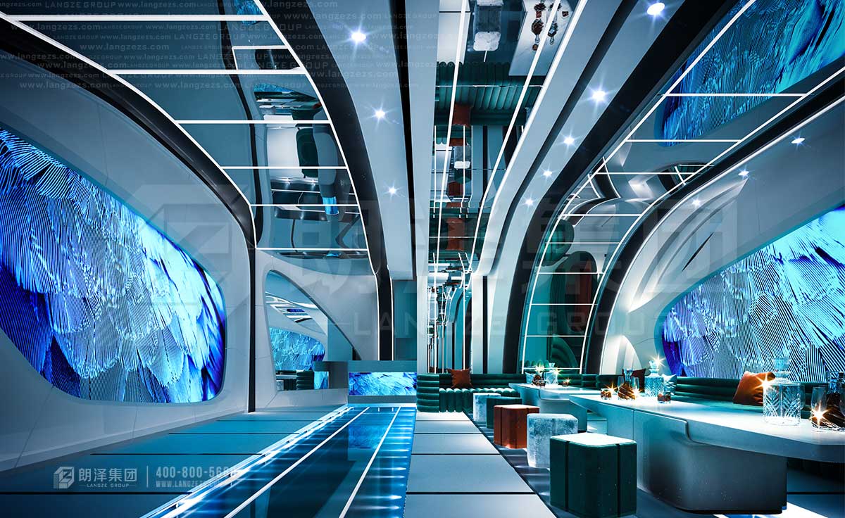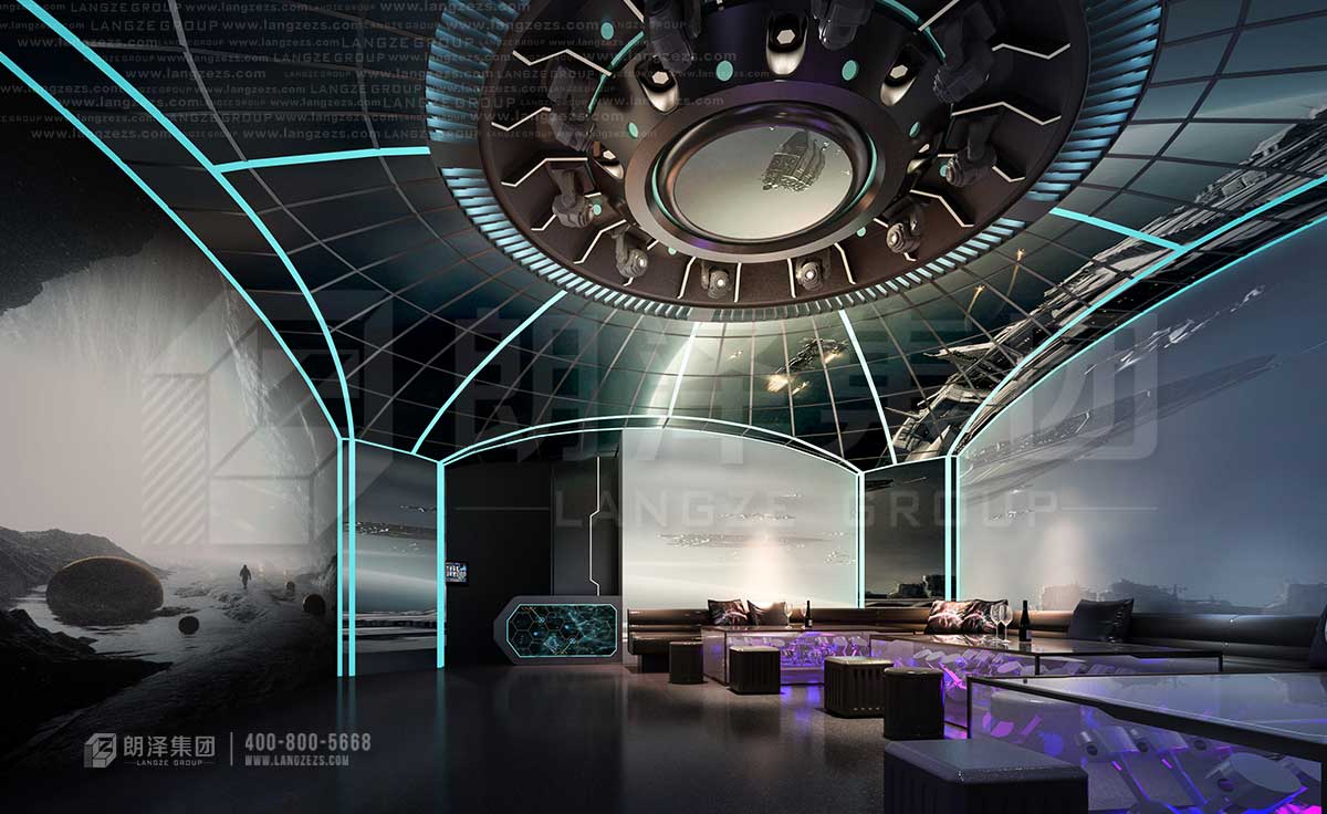 設(shè)計(jì)靈感來(lái)源于電影《阿凡達(dá)》里面的潘多拉星球,整個(gè)空間設(shè)計(jì)圍繞“未來(lái)、 科技、 星球”展開(kāi)。樓梯間外星人重兵把守,過(guò)道以科技線條重復(fù)有序排列,太空艙似的重機(jī)械門(mén),打造一個(gè)穿梭時(shí)空的異世界。包房中間以“星球”為主,大型彩色氛圍燈,旋轉(zhuǎn)交錯(cuò),充滿了未來(lái)科技感,如同打開(kāi)了“潘多拉盒子”把人帶入不同的時(shí)空。