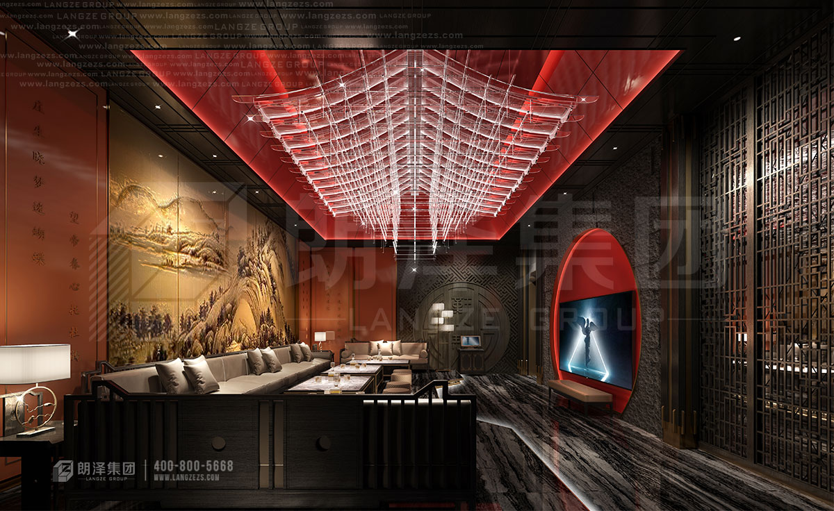 該項(xiàng)目融入東方的沉穩(wěn)與靈性,用時(shí)光的痕跡細(xì)膩刻畫(huà)溫潤(rùn)與澄靜,運(yùn)用摩登東方語(yǔ)言營(yíng)造當(dāng)代人文高致,探尋東方文化不可復(fù)制的人文意蘊(yùn)。用中式語(yǔ)境,結(jié)合丹巴當(dāng)?shù)匚幕?,以?dāng)代設(shè)計(jì)手法,讓新中式的格調(diào)得以再次升華,滿屋的色調(diào)前衛(wèi)而不失柔美氣韻。大廳設(shè)計(jì),飾面與棗紅色古典背景墻相映成彰,質(zhì)樸中彰顯高貴。茶白的清新自然,赭石的穩(wěn)重硬朗,猶如在山水之間,意境之中。包房設(shè)計(jì),布藝質(zhì)感的材質(zhì)舒適而溫婉,石材茶幾加以精巧絕美飾品的輕微點(diǎn)綴,讓空間在質(zhì)樸雅致的意境中,提煉出一絲微妙的當(dāng)代氣質(zhì),與空間契合,不溫不燥、不多不少、恰當(dāng)剛好。樸質(zhì)高貴的馬鞍棕色描摹出成熟,精煉簡(jiǎn)潔的現(xiàn)代線條勾勒出沉穩(wěn)。富有層次感的金屬幾何線條天花,搭配大理石茶幾與皮質(zhì)實(shí)木沙發(fā),烘托出空間奢華新穎交融的氛圍。