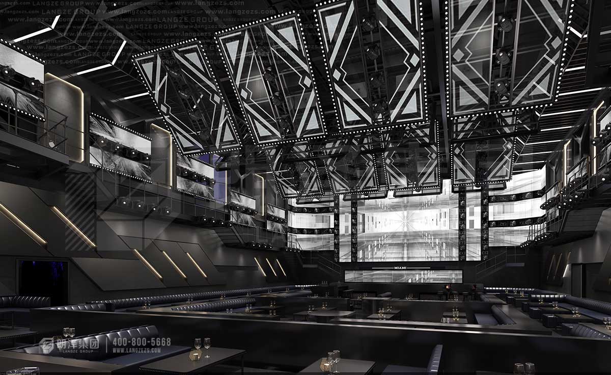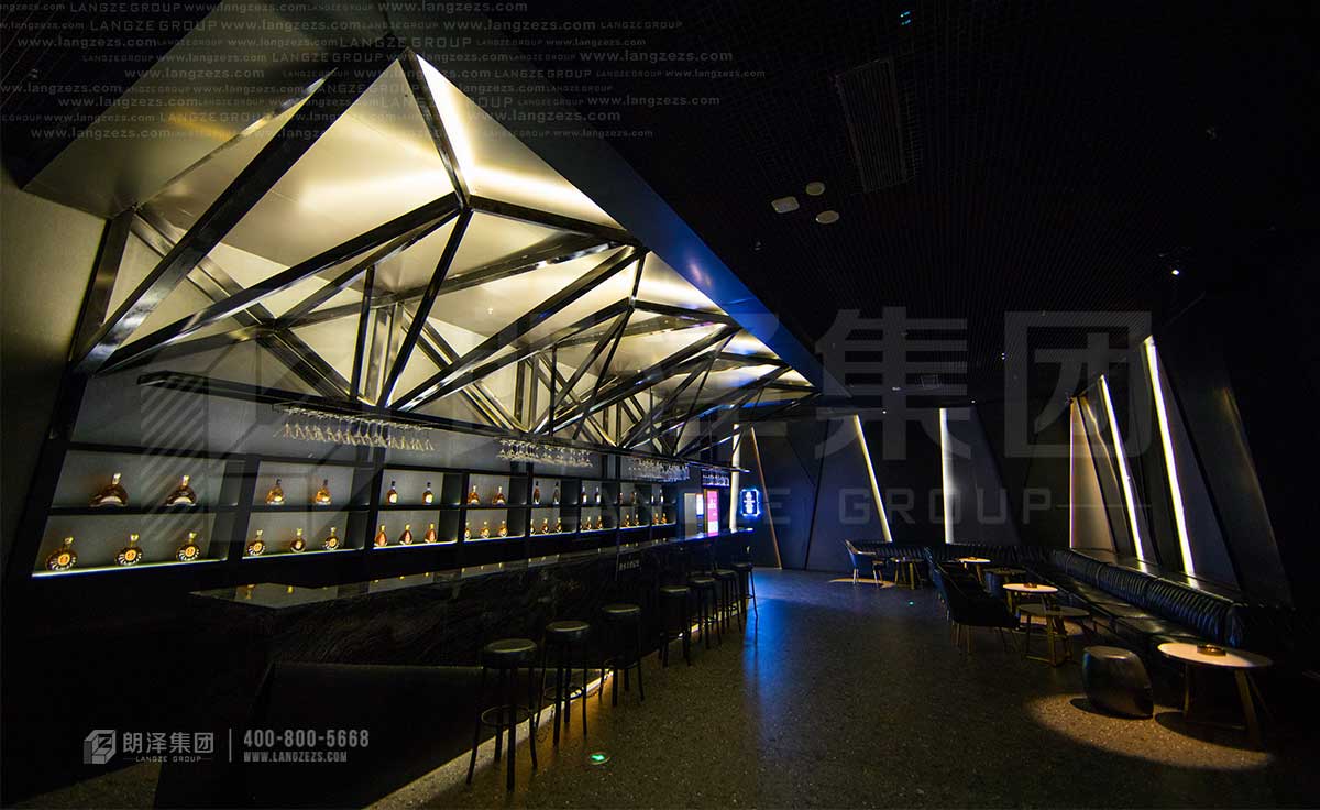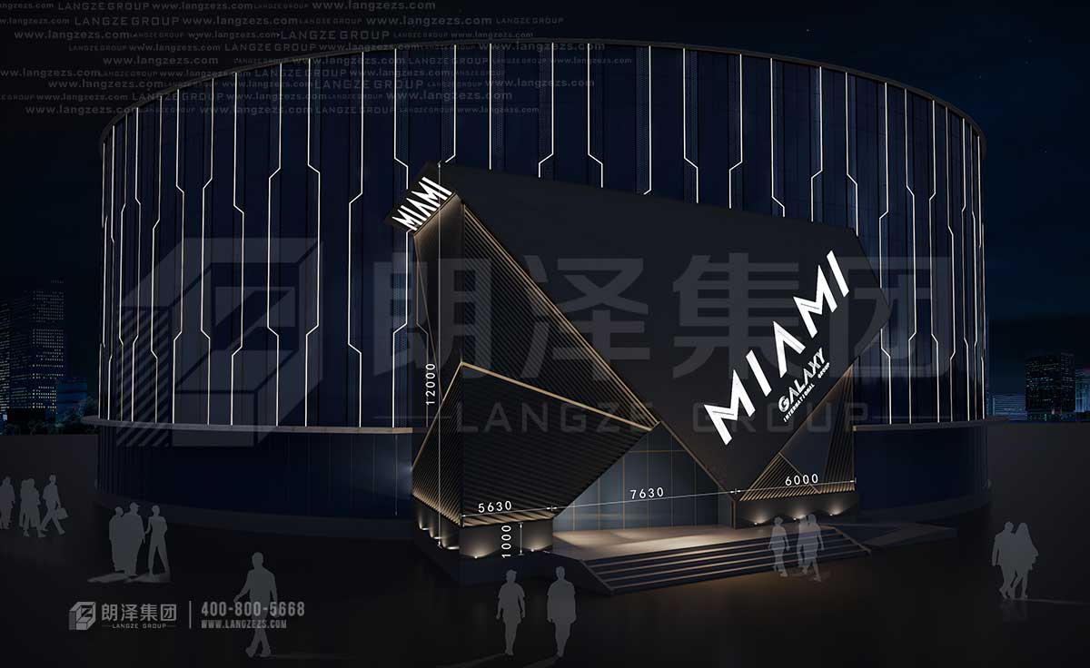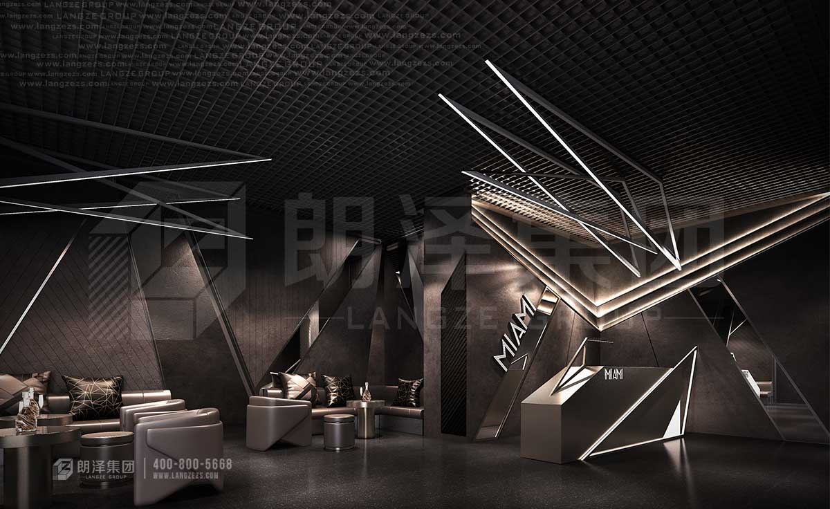 東營東臨渤海,與日本、韓國隔海相望,是環(huán)渤海經(jīng)濟區(qū)的重要節(jié)點。邁阿密酒吧的定位是高端輕奢酒吧。本項目采用幾何造型的拼接方式進行設計。強大的拼接給人震撼的美學視覺,不同材質(zhì)的幾何圖形進行的搭配,錯落有致,層次分明讓空間別有一番風味。外觀采用大型的幾何體,利用幾何體的張力使外觀更加大氣有氣勢。前廳在幾何體的基礎上增加了線的設計,讓空間更加的通透有活力。再搭配簡約低奢的裝飾,增加空間的格調(diào)。大廳的設計則是通過設計讓人與空間的互動感加強??臻g使用了大面積的LED電子屏幕,大廳的頂部大屏和機械結(jié)構相融合。天花上的大屏設計為可移動的,借助現(xiàn)代機械和軟件的技術實現(xiàn)全方位、多角度、多層次的氛圍營造,用科技來增強和消費者的互動交流。